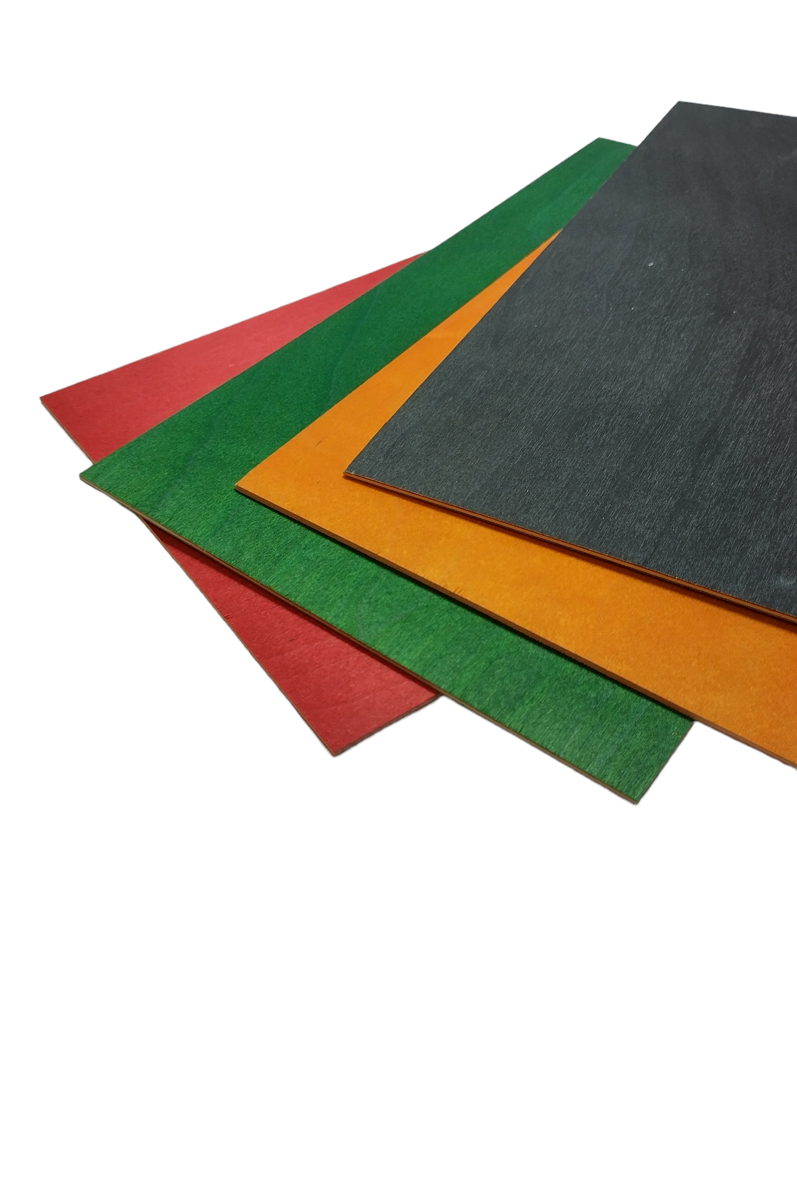 Plywood belagd med genomfärgad faner. Interör lim, så den är lämplig för laserskärning.